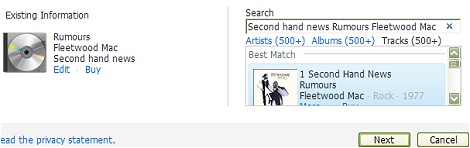 This takes you to another screen where Media Player tried to match the album.