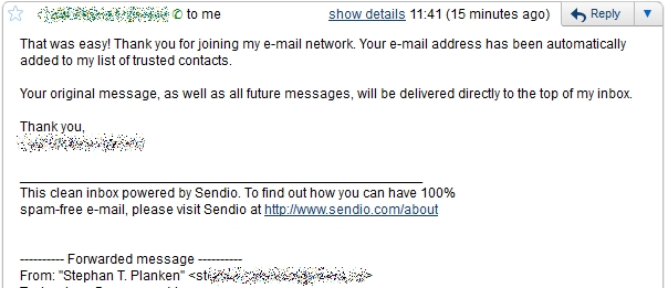 This type of automated response is probably the most useless type of email, immediately following unsolicited email. To require a customer to take action so that his email is actually delivered seems the wrong answer to spam prevention to me.